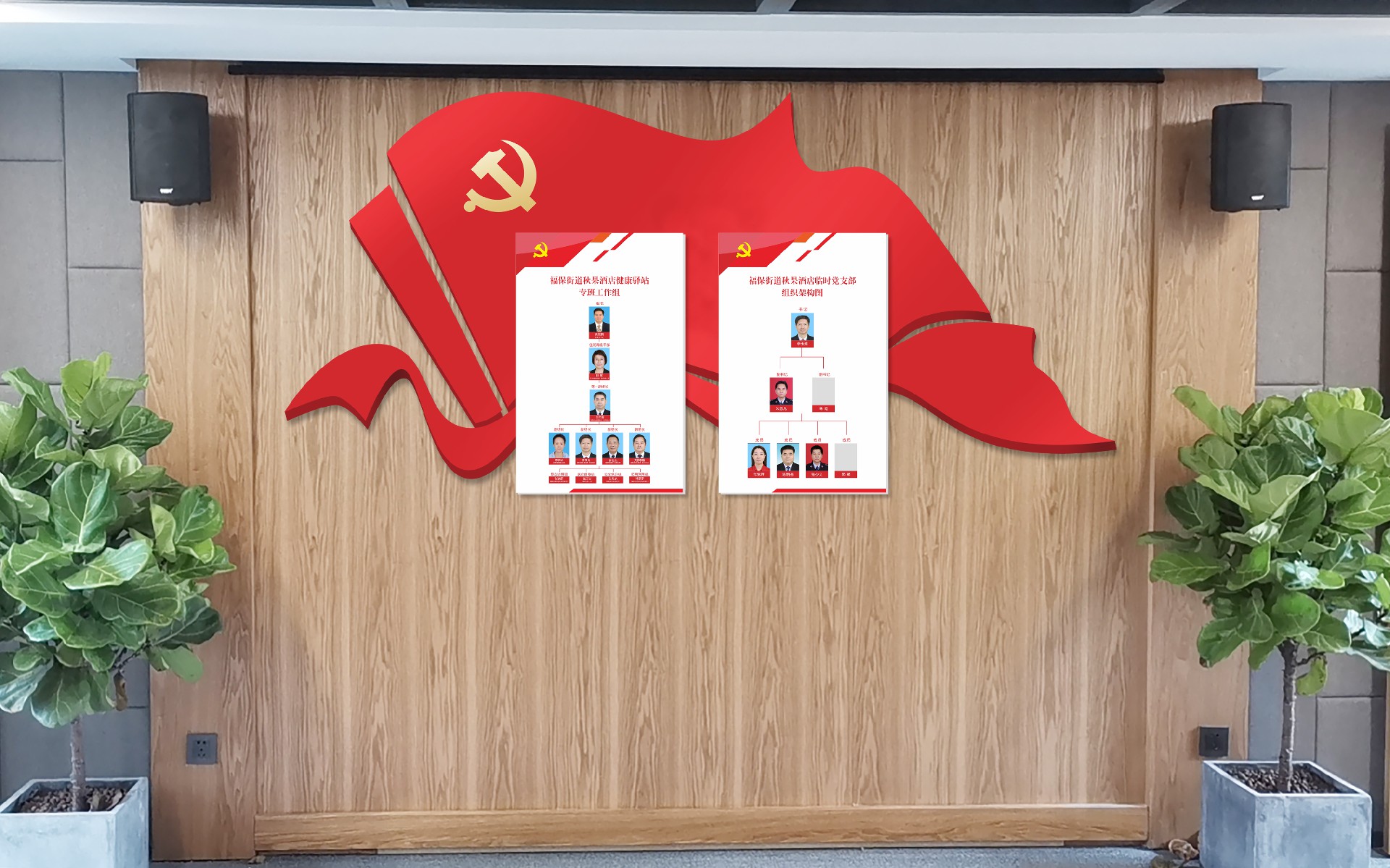 深圳市福田區福保街道秋果酒店防疫臨時黨支部形象設計由水思源設計團隊精心設計,高效率定制安裝。