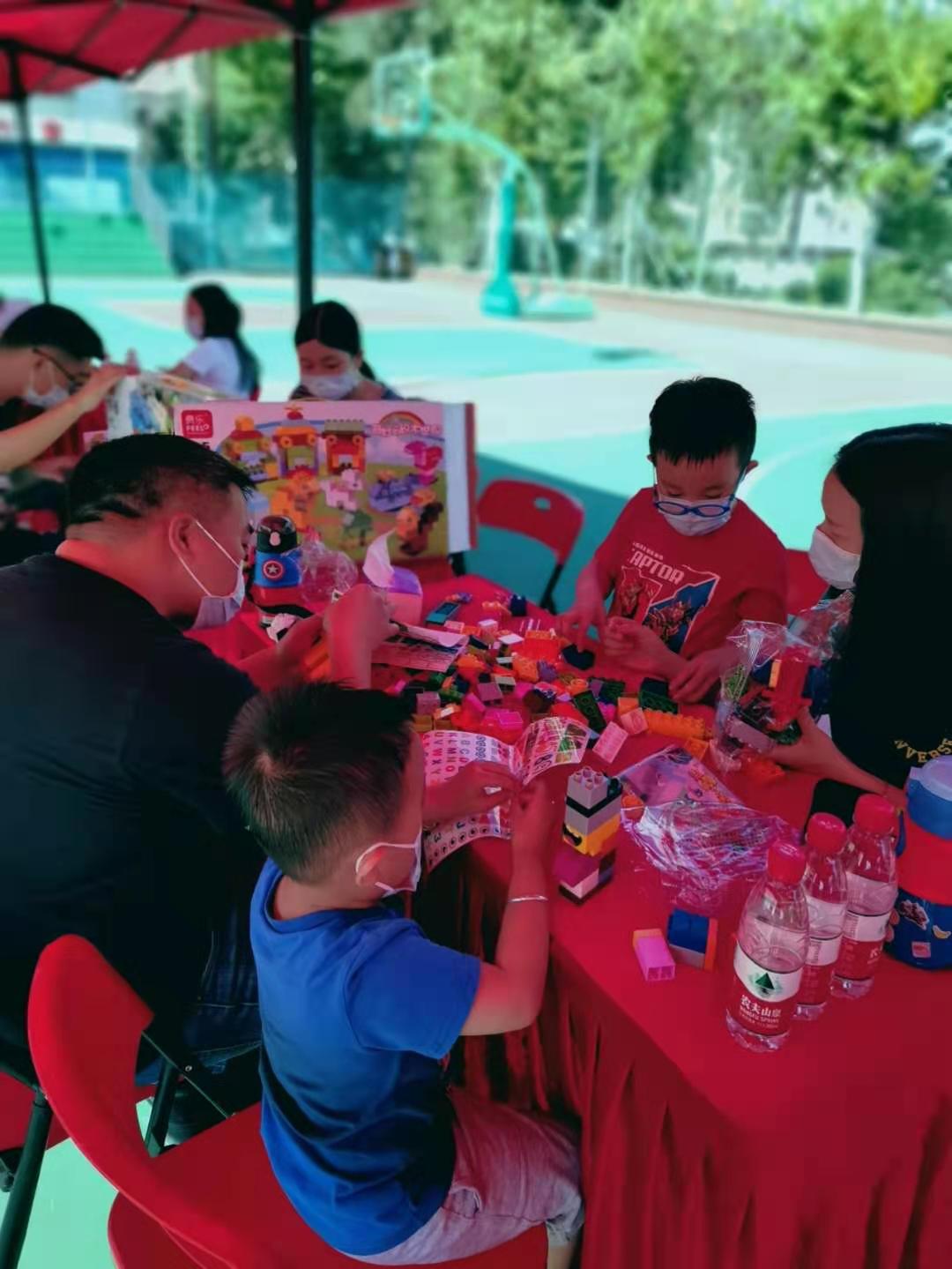 本次活動秉承寓教于樂、寓學于趣的理念以兒童“創意積木比拼大賽”的形式開展,由水思源品牌設計公司提供相關現場活動物料,如:展板、音響等設備,并在現場設立了科學育兒,科學備孕等相關知識展架,加強現場宣傳效果。本次活動做好了基礎防護工作,活動期間所有參與人員均需佩戴口罩。17戶家庭報名參與了本次活動,在工作中人員的帶領下,家長與孩子們積極有序的進行了相關知識的學習與積木比拼大賽,整場活動在歡快的學習與游戲氛圍中圓滿完成。